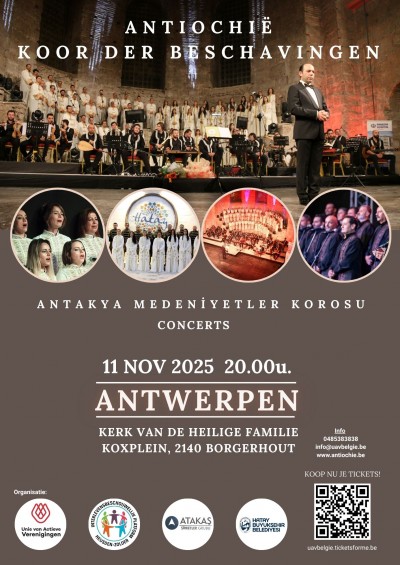 Op dinsdag 11 november 2025 verwelkomt onze parochie in Borgerhout het “Koor der beschavingen” uit Antiochië. Het gaat om een inter-religieus koor met een lange traditie. Het koor maakt een concerttour in ons land. Het concert vindt plaats om 20 uur in de kerk van de H Familie aan het Koxplein in Borgerhout.